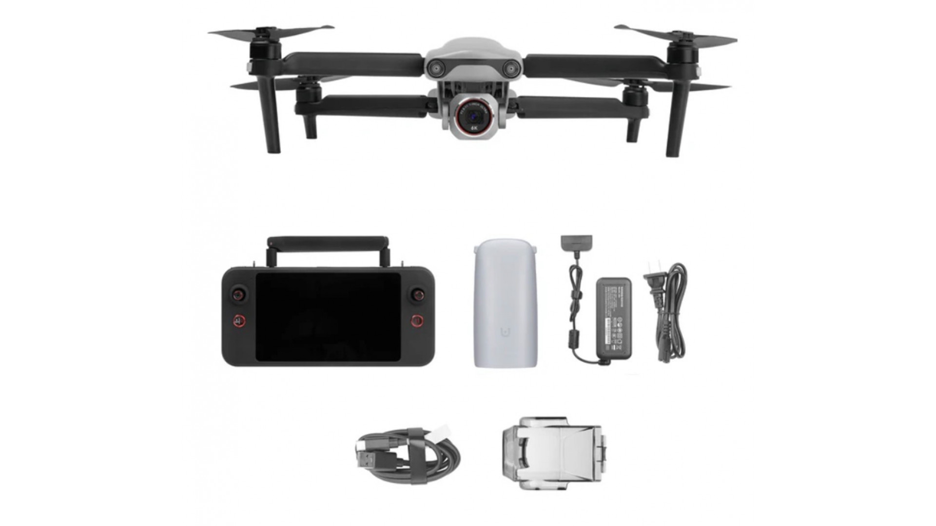 Комплектът включва три батерии на дистанционното управление и едно многопортово зарядно устройство, което отговаря на нуждите за продължителни операции. Многопортовото зарядно устройство за дистанционно управление поддържа зареждане на до четири батерии на дистанционното управление едновременно.
