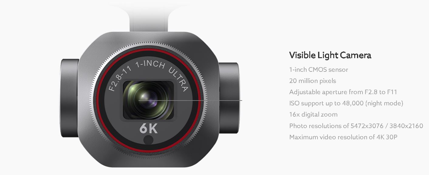 Оборудван с 6K камера с видима светлина, той все още може да заснема изображения с висока разделителна способност и ниско ниво на шум в среда с ниска осветеност, предоставяйки представа за целите и овластявайки сценарии за полицейско правоприлагане, патрулна инспекция, търсене и спасяване.