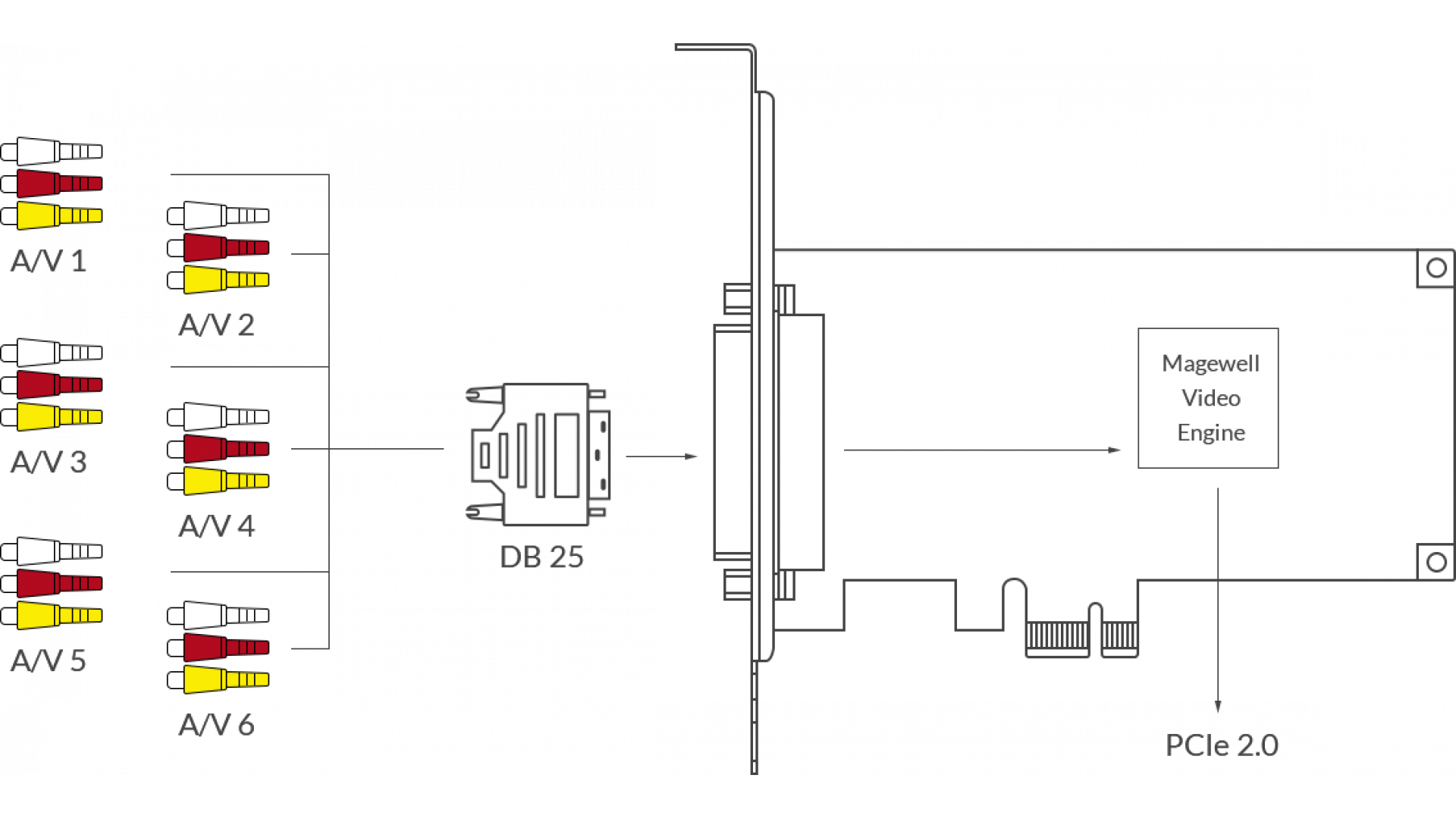 Тагове: Hexa CVBS capture card, Magewell six-channel video capture, low latency CVBS input, professional video processing, PCIe Hexa CVBS capture card
