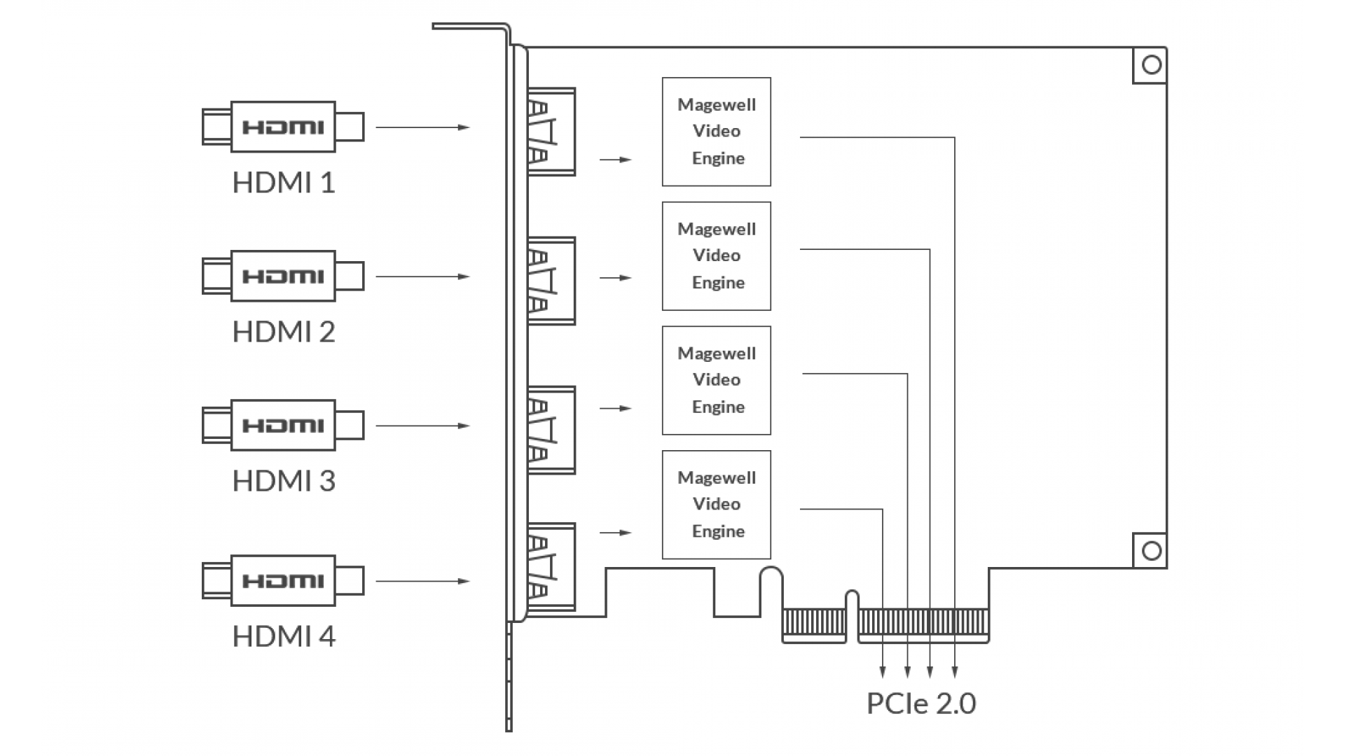 Тагове: Quad HDMI capture card, Magewell quad video capture, low latency video input, professional video processing, PCIe quad HDMI capture card