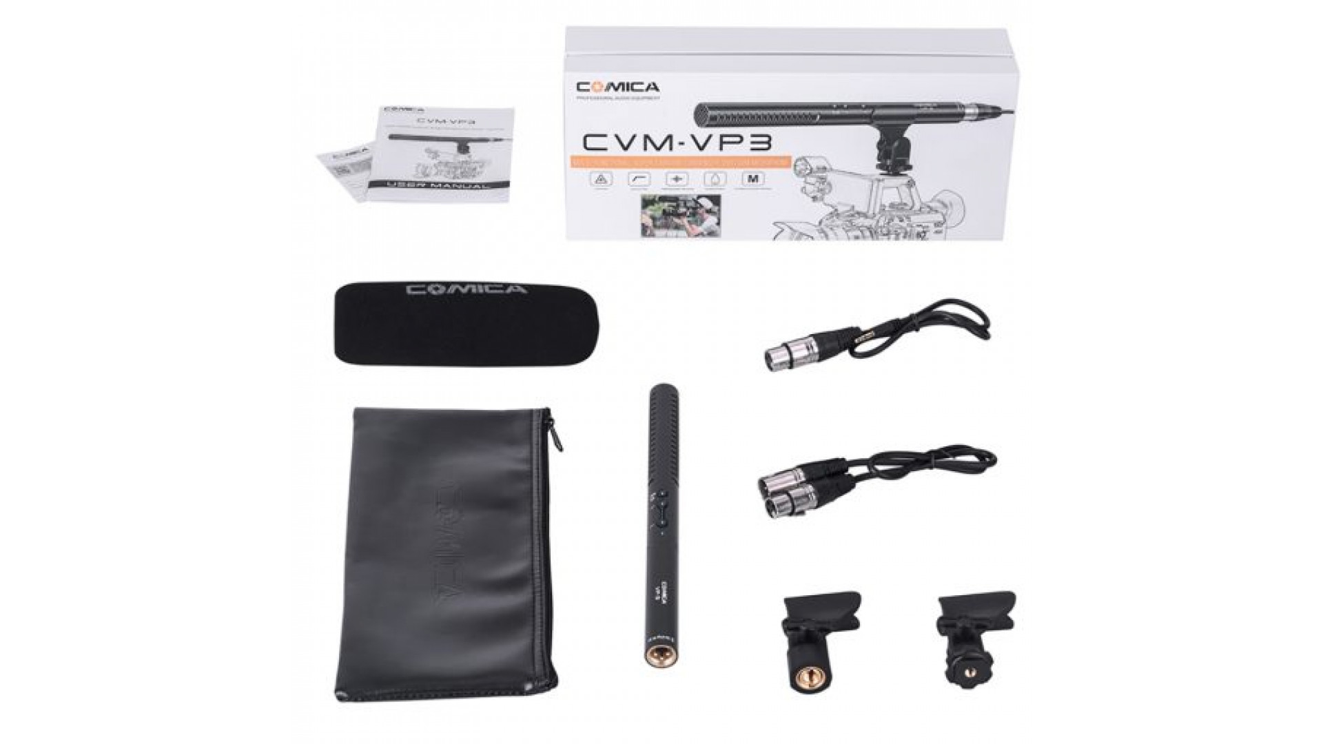 Насоченият кондензаторен видеомикрофон Comica CVM-VP3 със суперкардиоиден полярен модел е специално проектиран за видео заснемане, срещи и интервюта. Микрофонът е проектиран с верига с нисък шум, двустепенен високочестотен филтър, настройка на чувствителността -10dB, захранване от AA батерия, изцяло метална конструкция и супер екраниране, което осигурява на вашето видео качество на излъчвания звук.