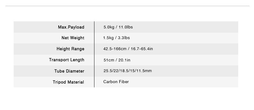 TC205B е леко и компактно решение за творци в движение. Изработен от издръжливи въглеродни влакна и сгъваем до 51 см, той лесно се побира в раницата ви за пътуване. С полезен товар от 5 кг, крачета с функия за заключване и регулируеми ъгли, той е подходящ за различни нужди при заснемане. Разполага също с кука за противотежест, нивелир и скрито място за съхранение на шестостенни ключове за удобство..